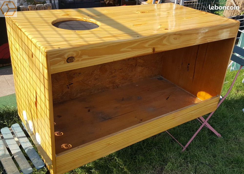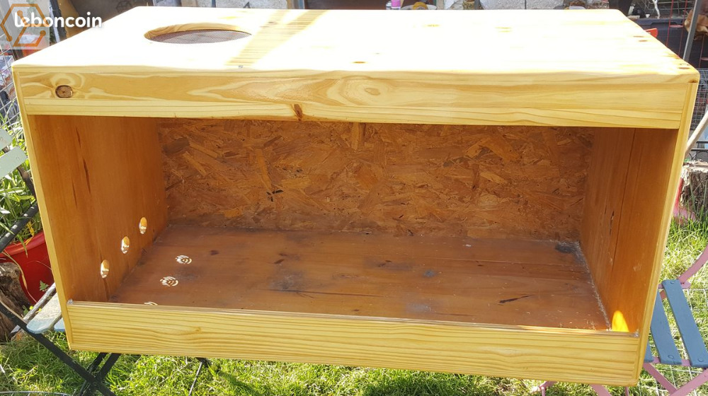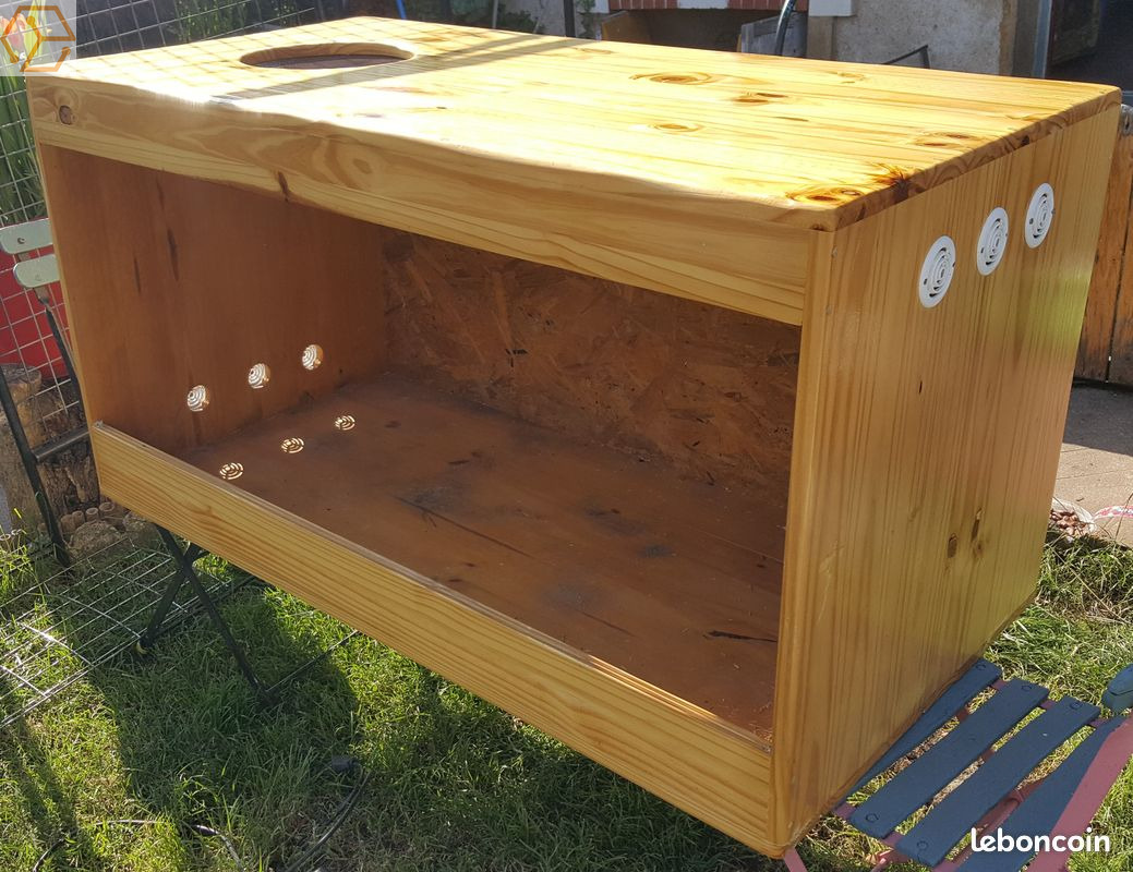 bonjour a vendre terrarium fabrication fait par un menuisier en véritable bois . 120x60x60 aération basse et haute , glace avec rail haut et bas pour facilitée le nettoyage .verni marin . Possibilité aussi de vous avoir aussi le matérielle neuf pour tt types de reptiles.