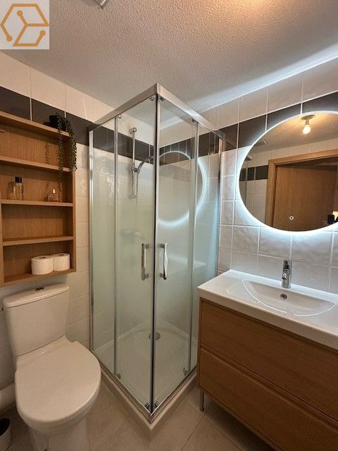 La salle d'eau avec WC est à l'image du reste de l'appartement, moderne et fonctionnelle.