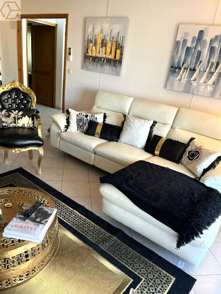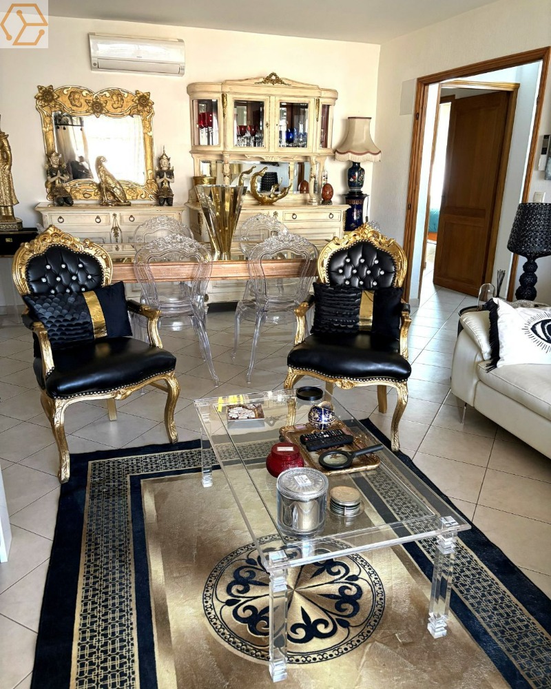 Vous entrerez dans salon-séjour à l'ambiance élégante et sophistiquée avec accès direct à la terrasse, offrant une belle luminosité et une extension naturelle de l'espace de vie vers l'extérieur.