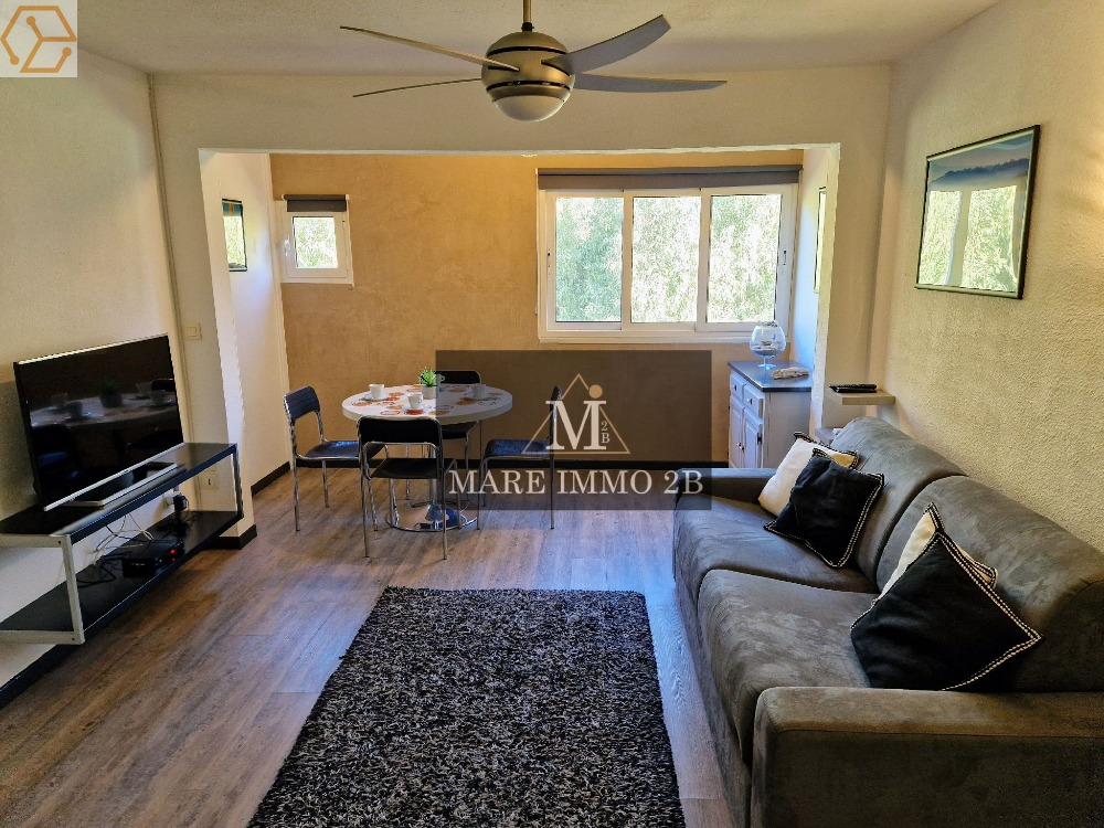 Studio de 27m2 situé au cœur de la pinède, au 2ème et dernier étage d’une résidence bien entretenue avec gardien, il offre un accès direct à la plage.