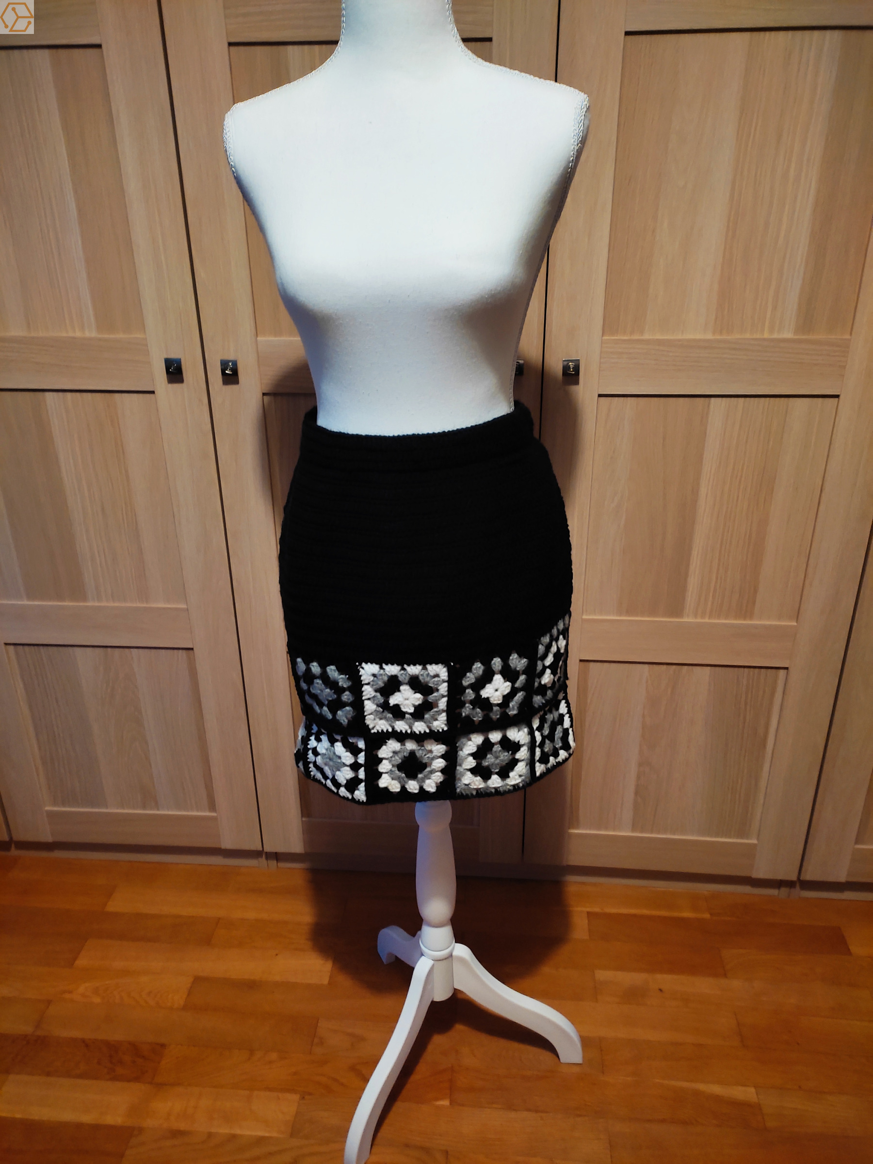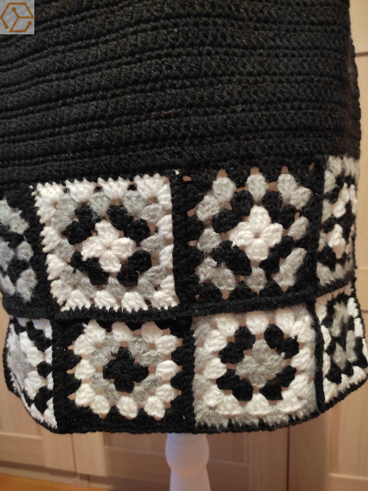 je vends cette jupe carrés grannys fait au crochet T40/42 taille élastique en laine acrylique ( transaction par vinted ou le bon coin )