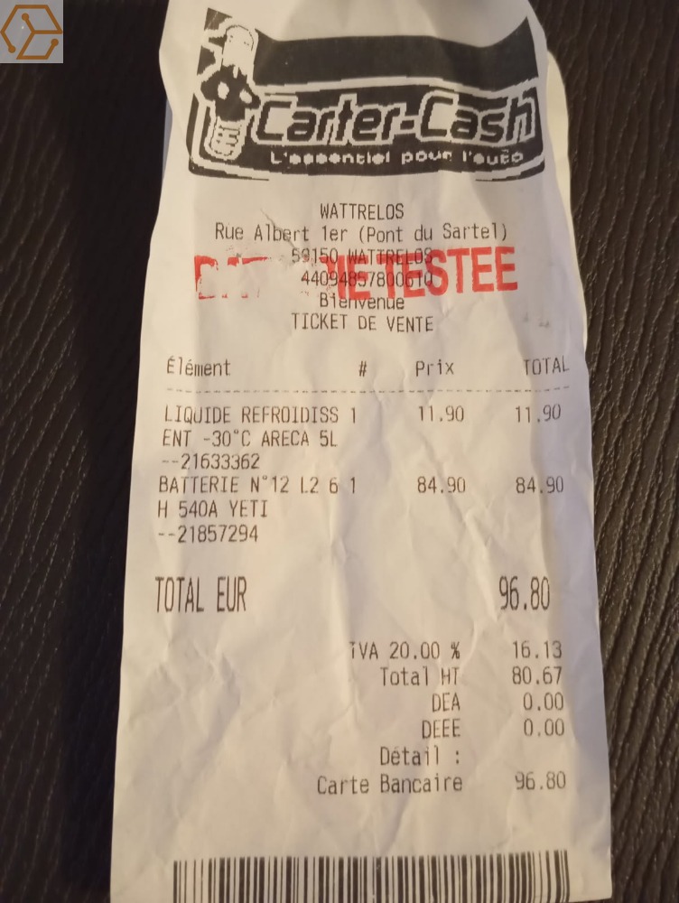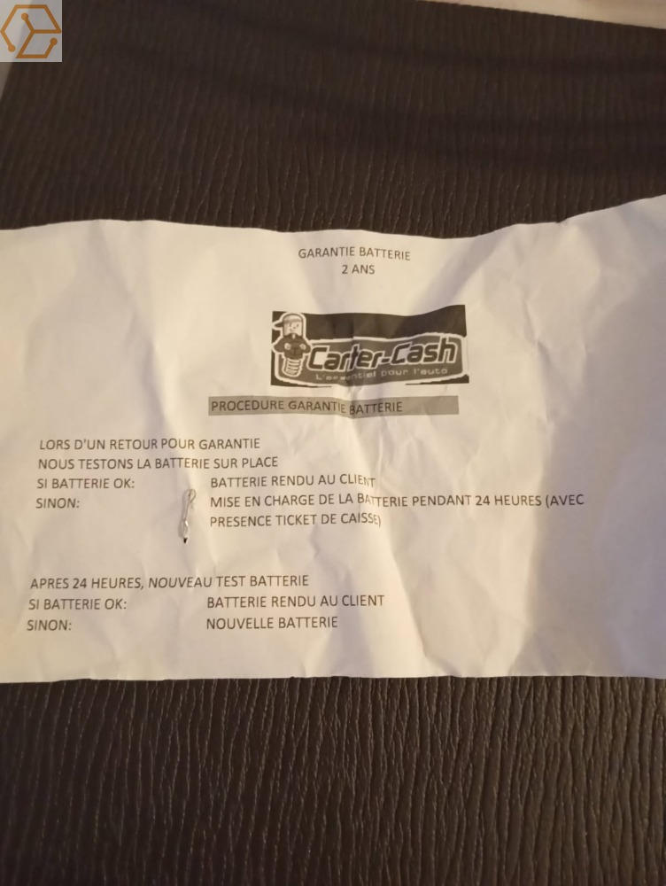 facture fournie à l'achat de la batterie avec le ticket de garantie.